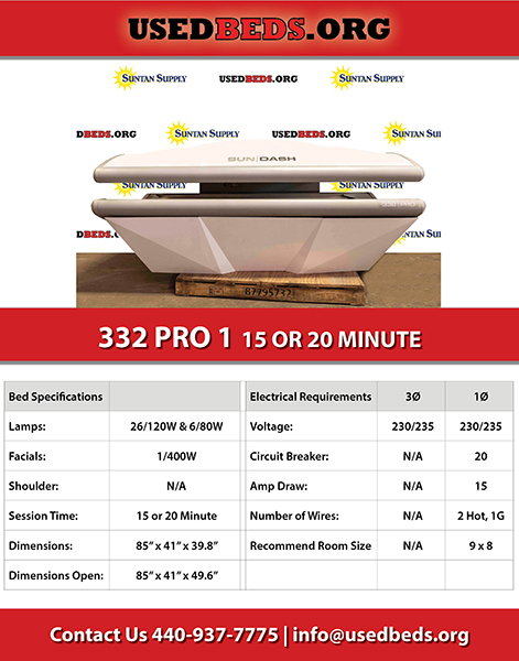32 LAMPS (26/120W & 6/80W), 1/400W FACIAL, 20 MINUTE
